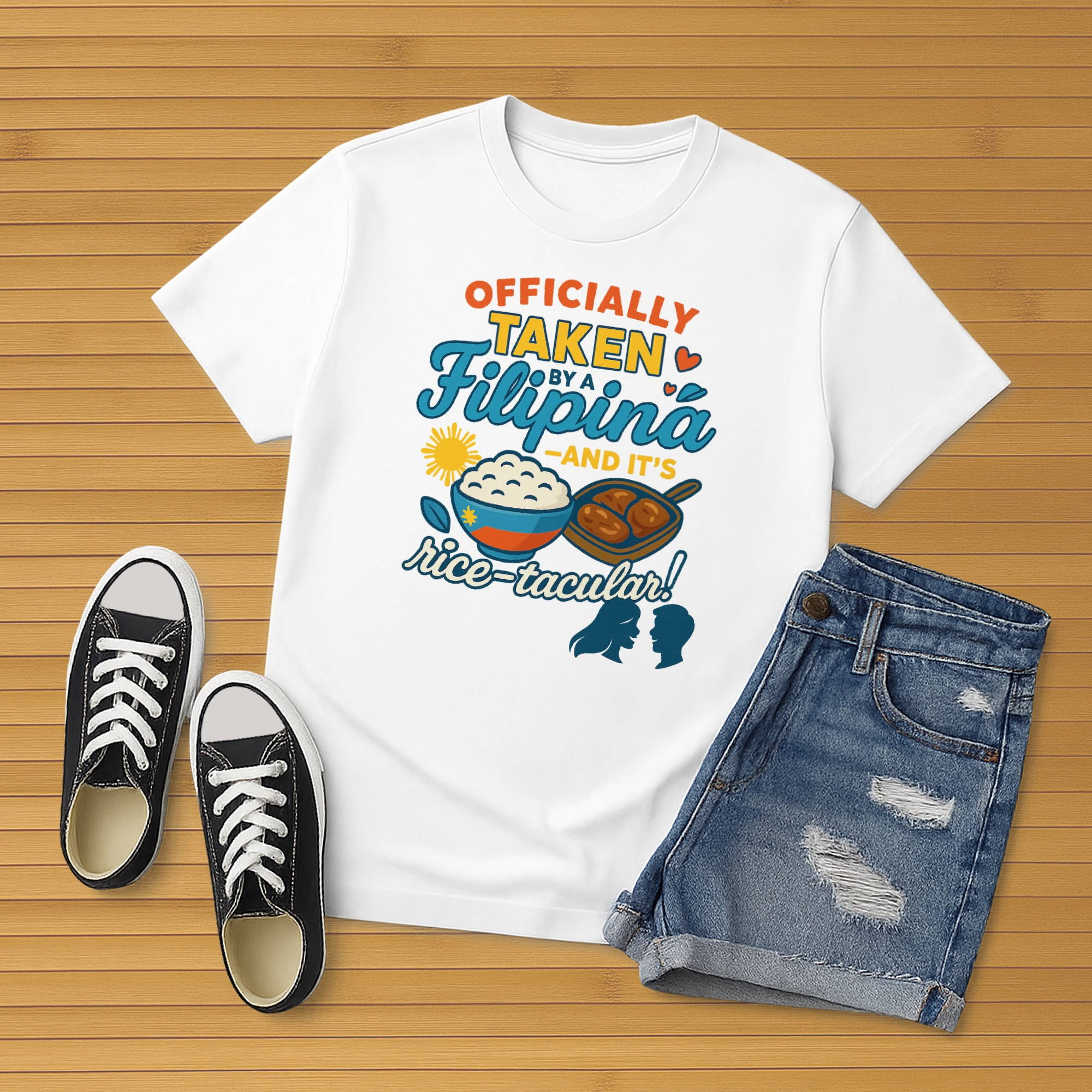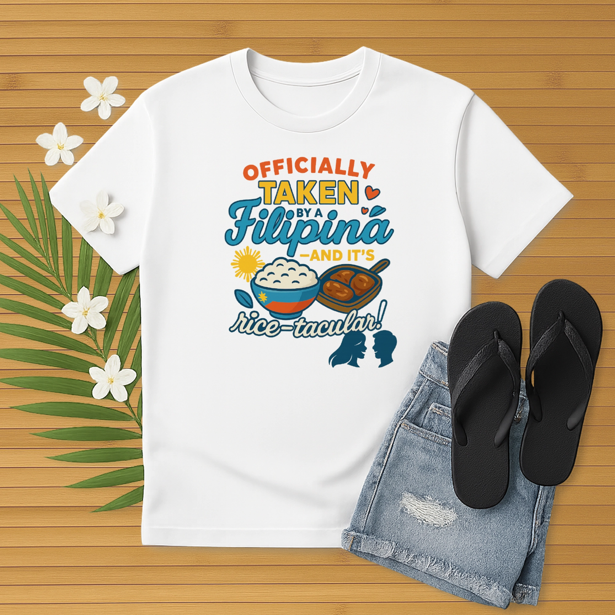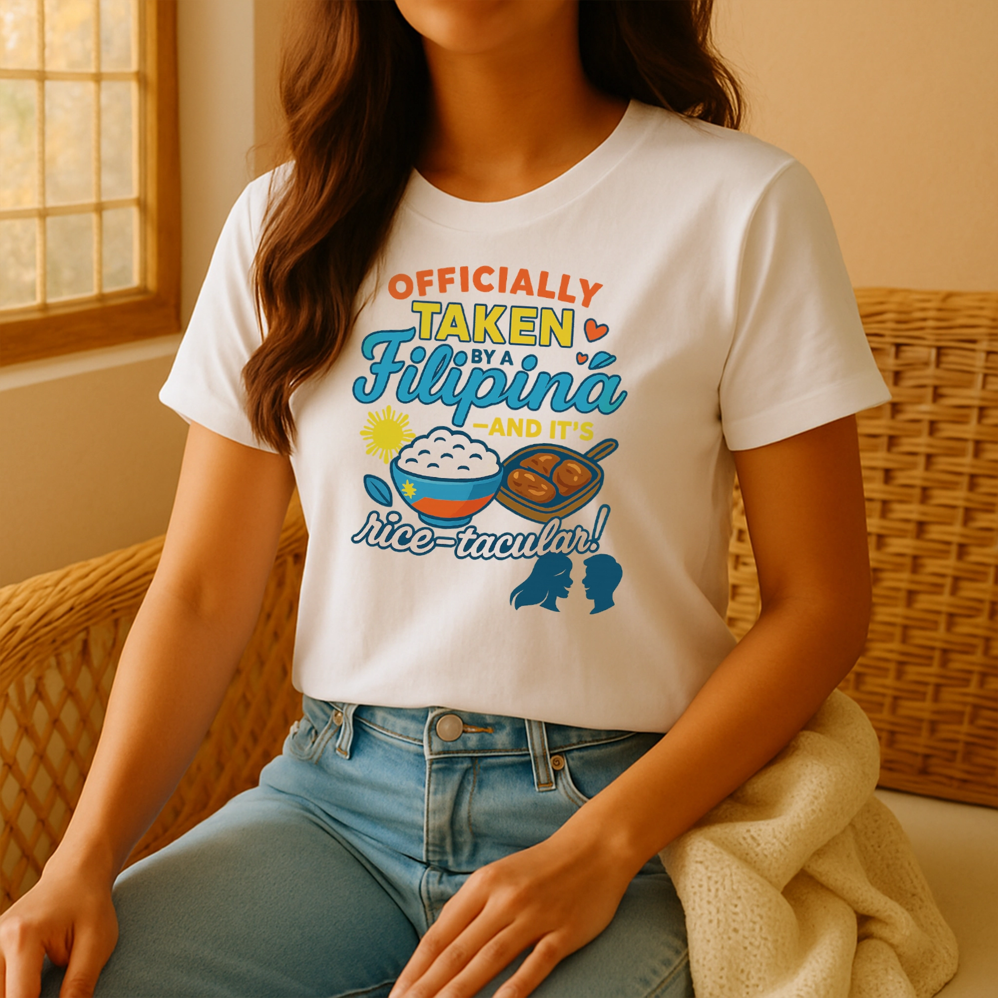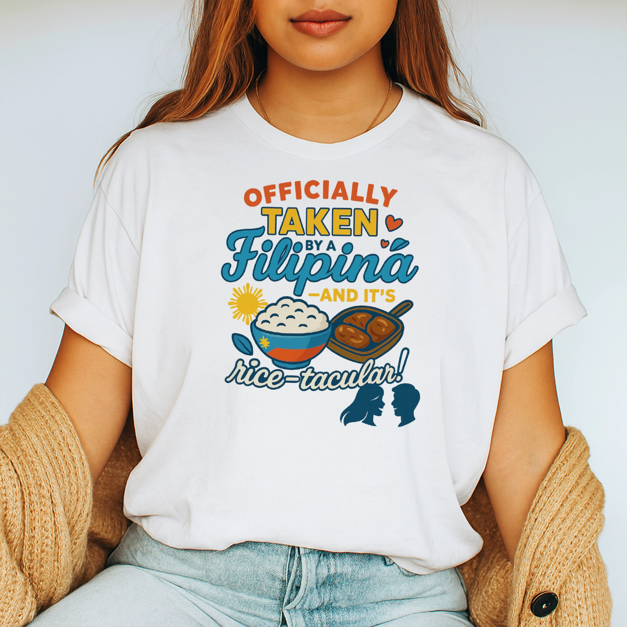 Officially taken by a Filipina? It’s a full lifestyle upgrade! This tee is a proud statement celebrating the love, warmth, and endless rice that come with it.