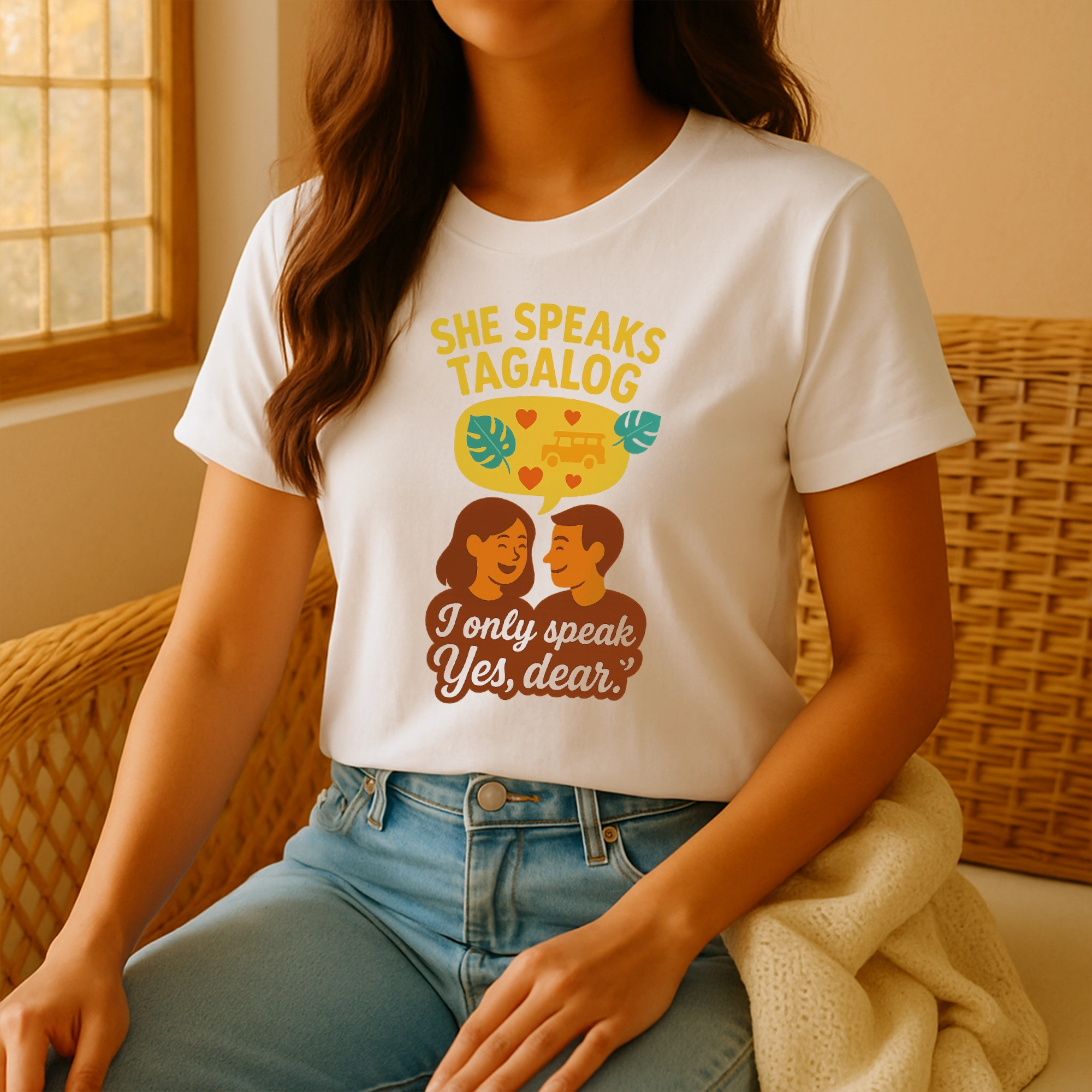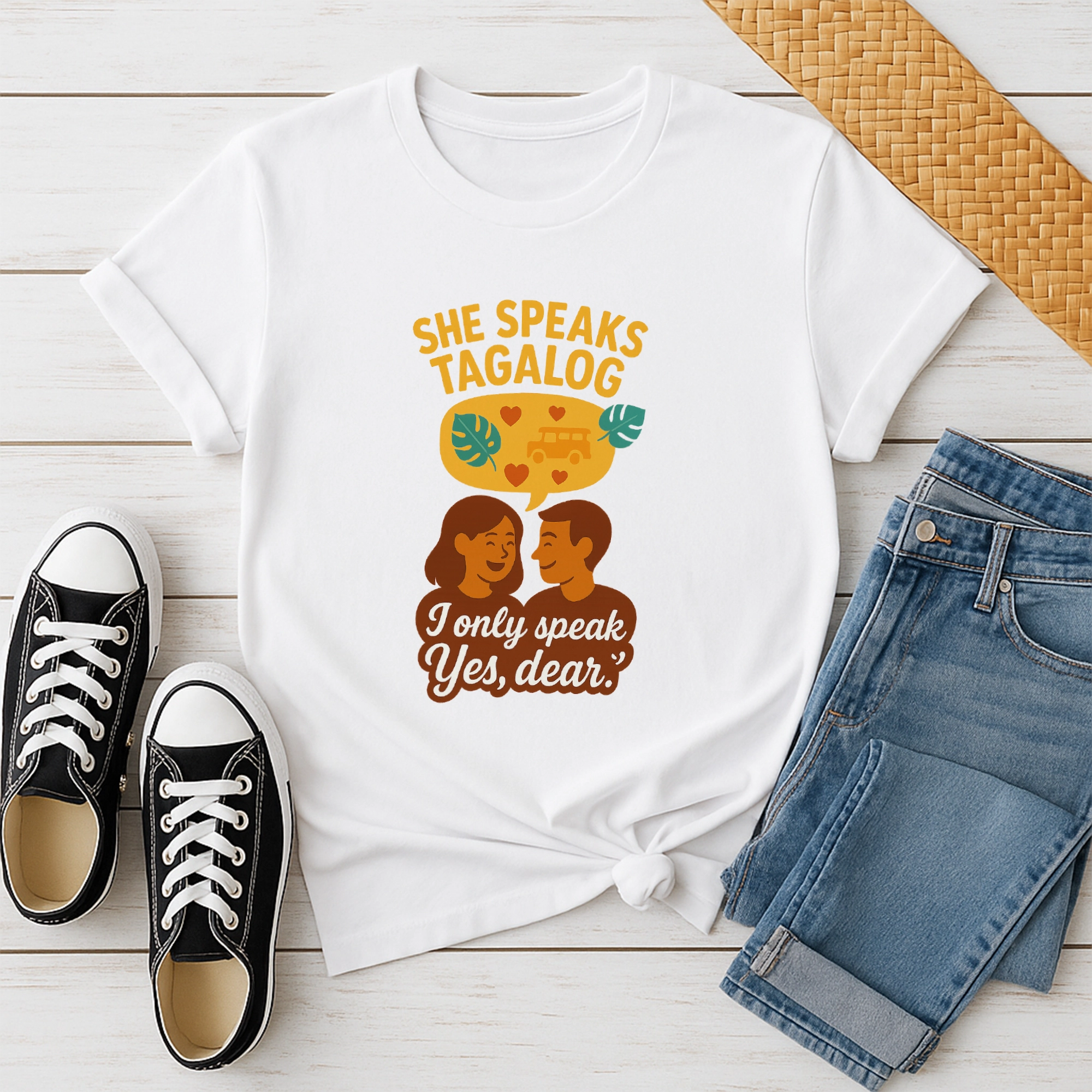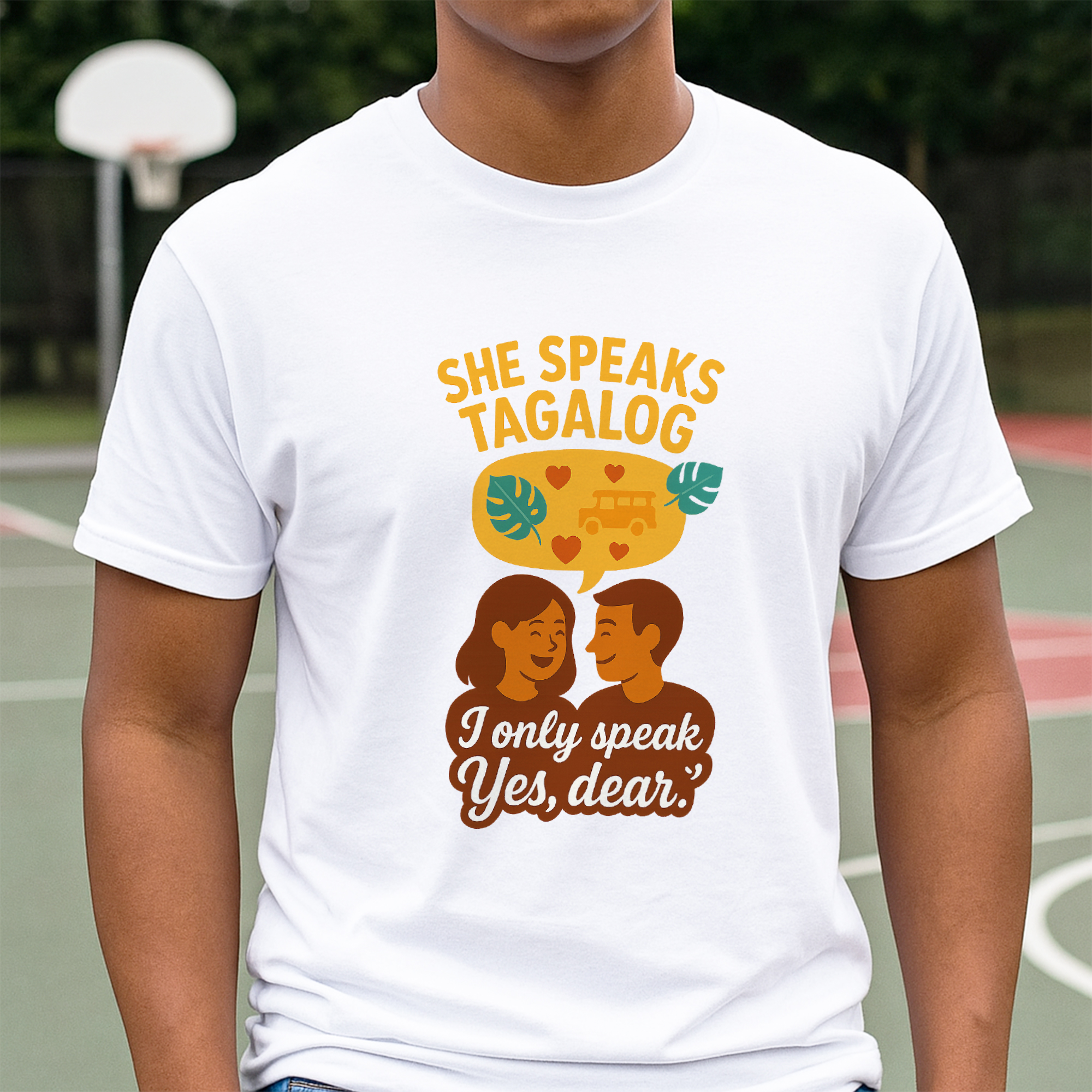 You don’t need fluent Tagalog to master cross-cultural love. Just know the most important phrase: “Yes, dear!” This tee is for loving partners who make their Filipina smile.