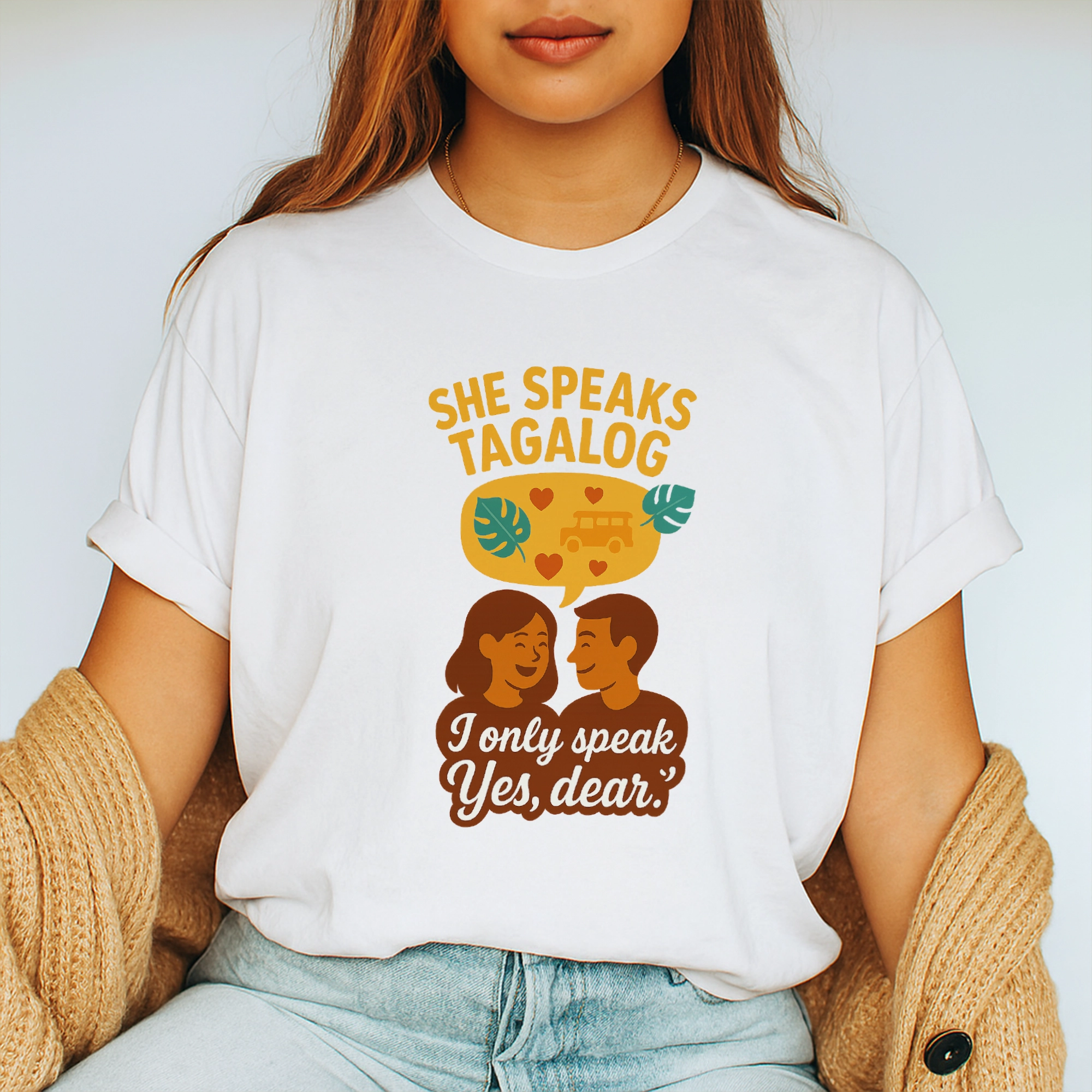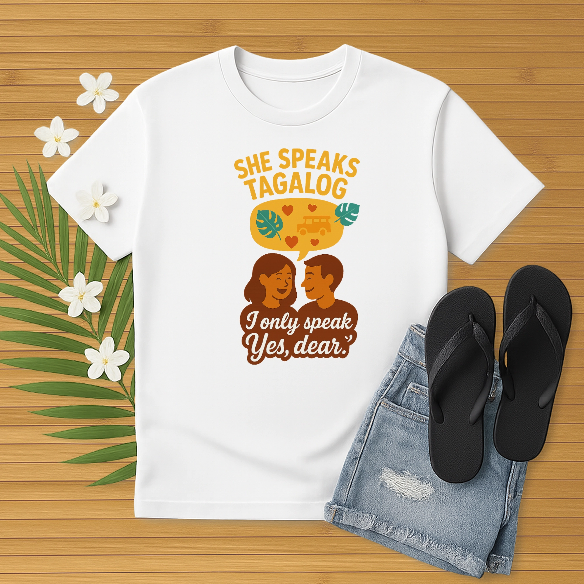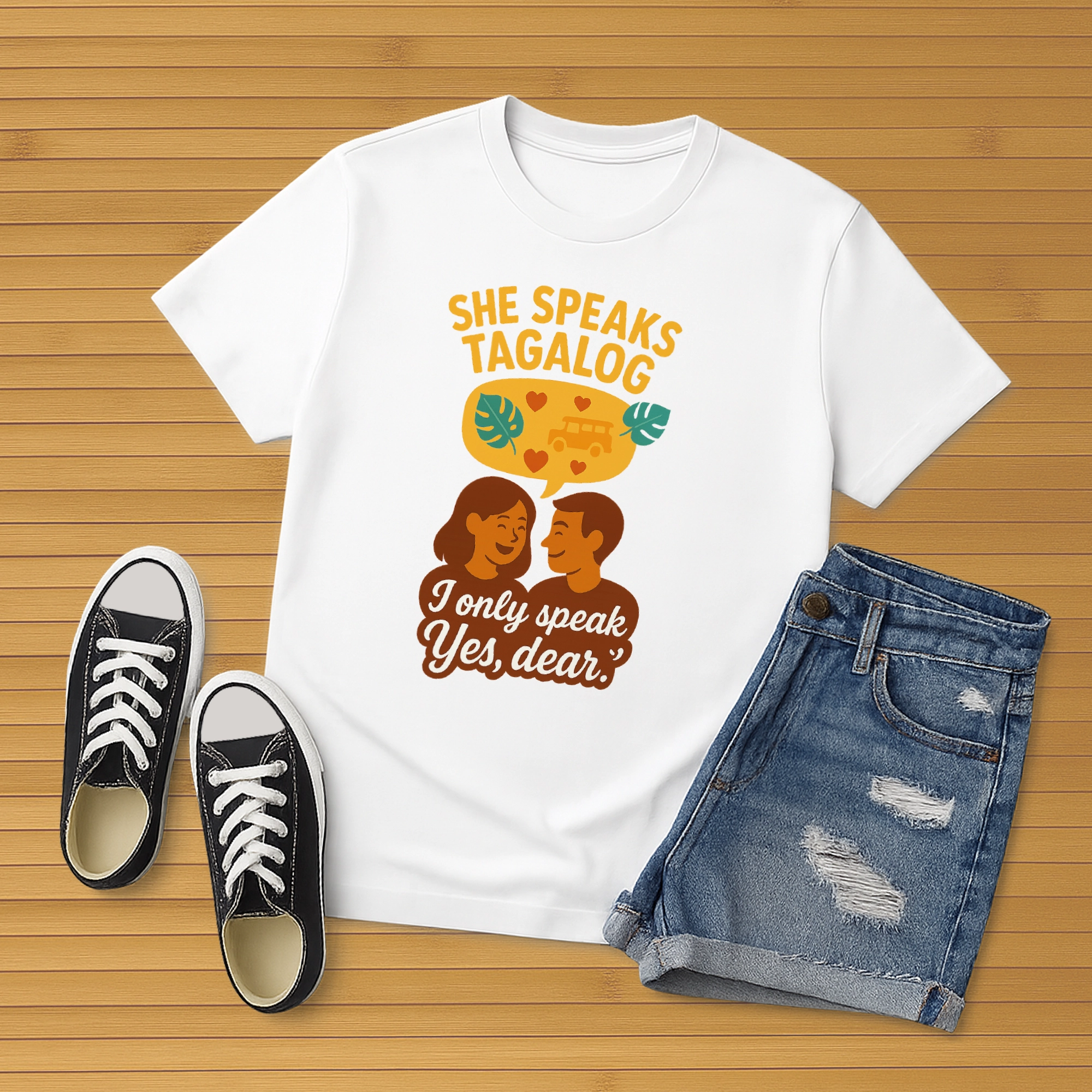 You don’t need fluent Tagalog to master cross-cultural love. Just know the most important phrase: “Yes, dear!” This tee is for loving partners who make their Filipina smile.